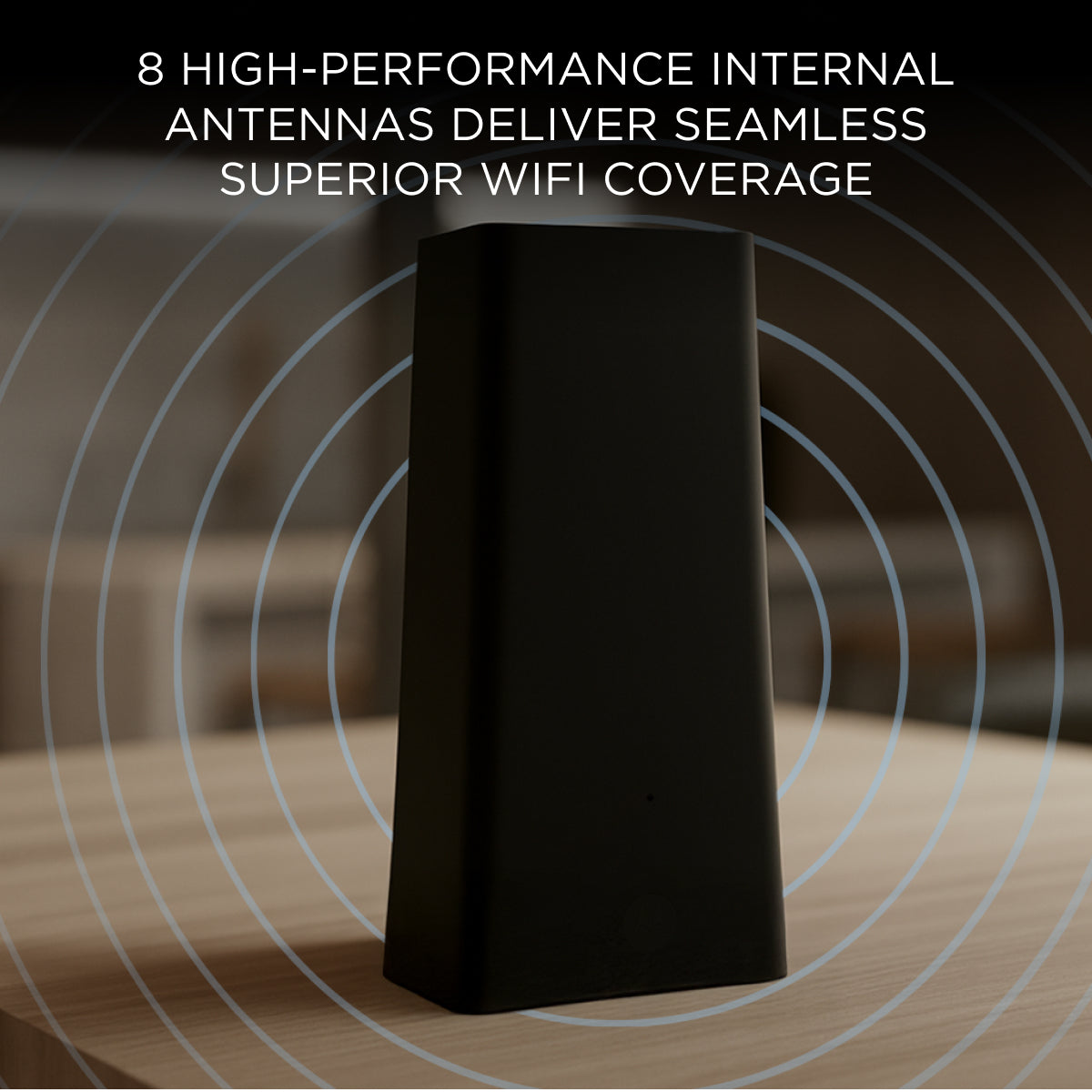 Motorola delivers whole-home coverage in a single, powerful device, saving space and simplifying setup. One MQ20 router is all you need for complete coverage up to 3,000 sq. ft, thanks to 8 high-gain antennas