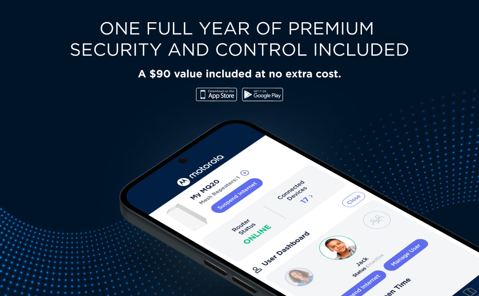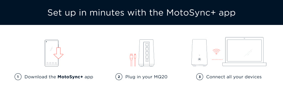 - Easily manage your home network with the free MotoSync+ app. Set up in minutes, customize parental controls, get real-time alerts, and control device access from anywhere. Advanced firewall, real-time malware blocking, ransomware protection, and phishing defense provide enterprise-level security for every connected device, 24/7
